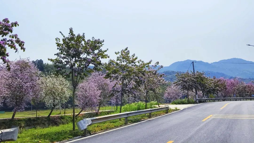 四会市公路事务中心谨慎东谈主谭星河先容:“为提高沿线各镇风貌,助力乡村振兴,2018年,四会市践诺S260威整圩镇至金宝利路段绿化面容工程,种下小叶榕、宫粉紫荆、凤凰木、香樟、大红花等多个品种的苗木,数目近14万株。2025年,当地在交流路段开展绿好意思公路创建工程,在原有绿化基础上,种上宫粉紫荆、香樟、秋枫、黄金叶、双荚槐等苗木约6000株。”