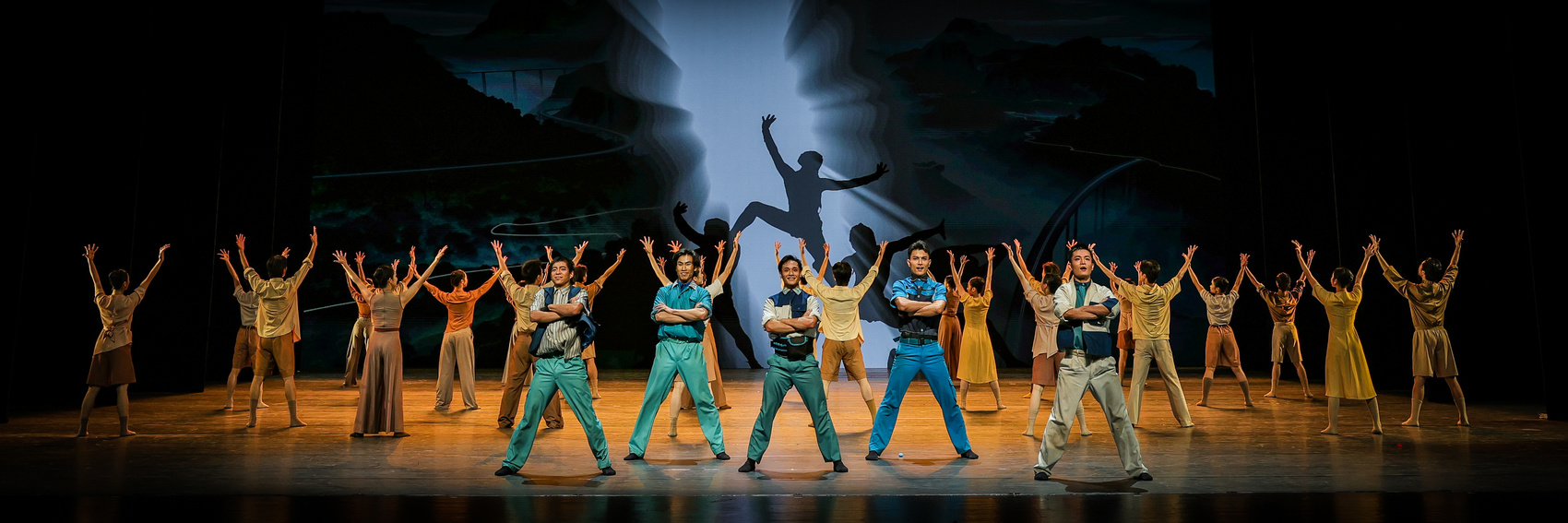 跳舞诗剧《蜀说念》从五丁开山的听说启动记忆蜀说念发源,以五丁开说念为序,分润川化蜀、剑阁峥嵘、翠云穹廊、贩子焚烧、古今之说念等篇章,论说李冰治水、文翁化蜀种植天府之土的民物阜康,姜维守关剑阁、翠云廊督察蜀说念千年苍翠,十二月市的贩子焚烧,以及由古及今的生生不停。